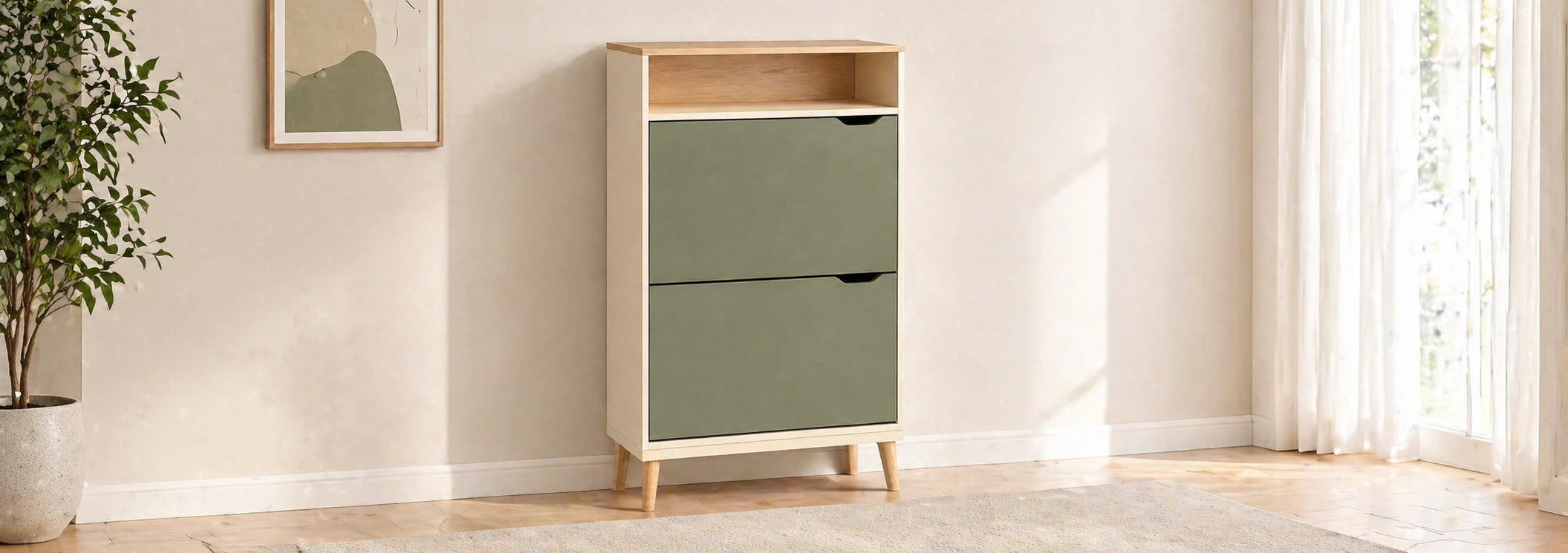 Diseño minimalista para tu recibidor. Combina funcionalidad y estilo, con espacio para guardar y exhibir.